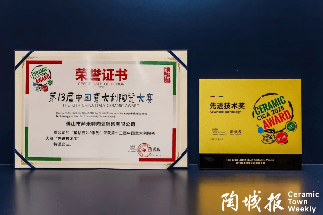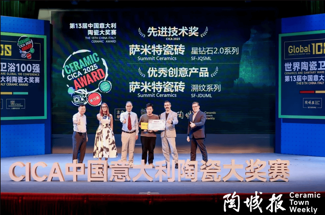 萨米特瓷砖「银河絮语·星纹」系列、「银河絮语·溯纹」系列双双折桂,将“先进技术奖”与“优秀创意产品”两大荣誉收入囊中。这不仅是国际权威对萨米特产品力的至高认可,更是萨米特25年“向上攀登”品牌精神的最佳印证。