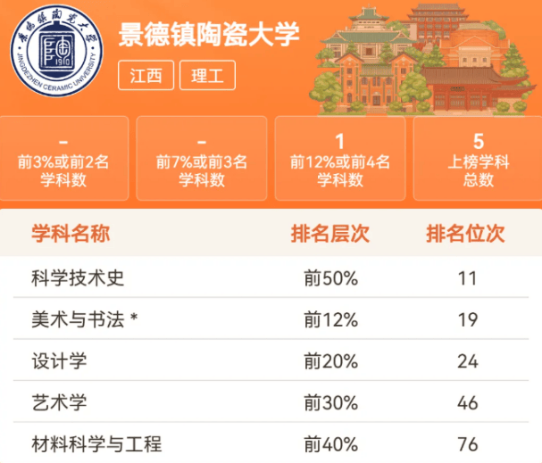 在最新一轮的学科评估中,美术学和设计学获评全国前10%-20%,材料学与工程获评全国前40%-50%,材料学学科进入全球前1%。陶大共拥有13个国家级一流本科专业,其中材料类专业负责陶瓷类产品的研发升级;设计类专业负责陶瓷类产品的创新与工艺制作;管理类专业则负责陶瓷类产品的市场转化,促成了特色专业学科与陶瓷产业链的深度绑定。