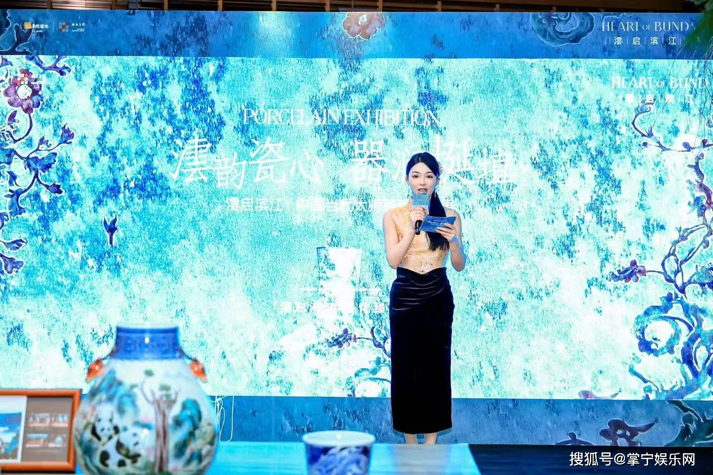 启幕仪式上,筱晩身着融合瓷韵元素的雅致礼服亮相,开篇便以“江河滋养文明,瓷火照亮岁月”的诗意表达,串联起滨江地理文脉与陶瓷艺术的深厚渊源,瞬间点燃现场氛围。她精准介绍了展览的核心价值与亮点作品,从国家级大师的非遗传承之作,到融入现代设计理念的生活美学瓷器,每一件作品的工艺特色与文化内涵都在其生动解读下愈发鲜明。在嘉宾互动环节,筱晩巧妙衔接陶瓷大师分享与现场观众提问,既深挖创作背后的匠心故事,又引导观众感受“瓷艺生活化、生活艺术化”的展览理念,让专业艺术对话变得通俗易懂、富有温度。