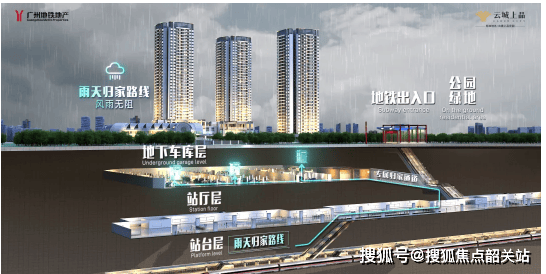 2. 双地铁上盖,交通出行极致便捷。项目坐落于18+22号线白云城市中心站上盖,两条高速地铁设计时速160公里,能快速通达广州各大核心区域及大湾区主要城市。同时,专属归家通道设计,实现“无缝”出行,无惧日晒雨淋。