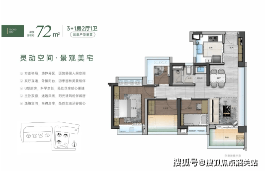目前,项目一期在售户型为72-88-105㎡四房户型,交楼时间为2025年12月。其中,72㎡四房户型是项目的明星户型,在同面积段产品中极具竞争力。该户型布局紧凑合理,充分利用每一寸空间,实现了“小面积大功能”的设计理念。户型南北通透,采光通风效果好;客厅连接阳台,拓展了室内空间,也为业主提供了观景、晾晒的空间;四个房间布局合理,可根据家庭需求灵活改造为卧室、书房、儿童房等,能满足三口之家、二胎家庭甚至三代同堂的居住需求。