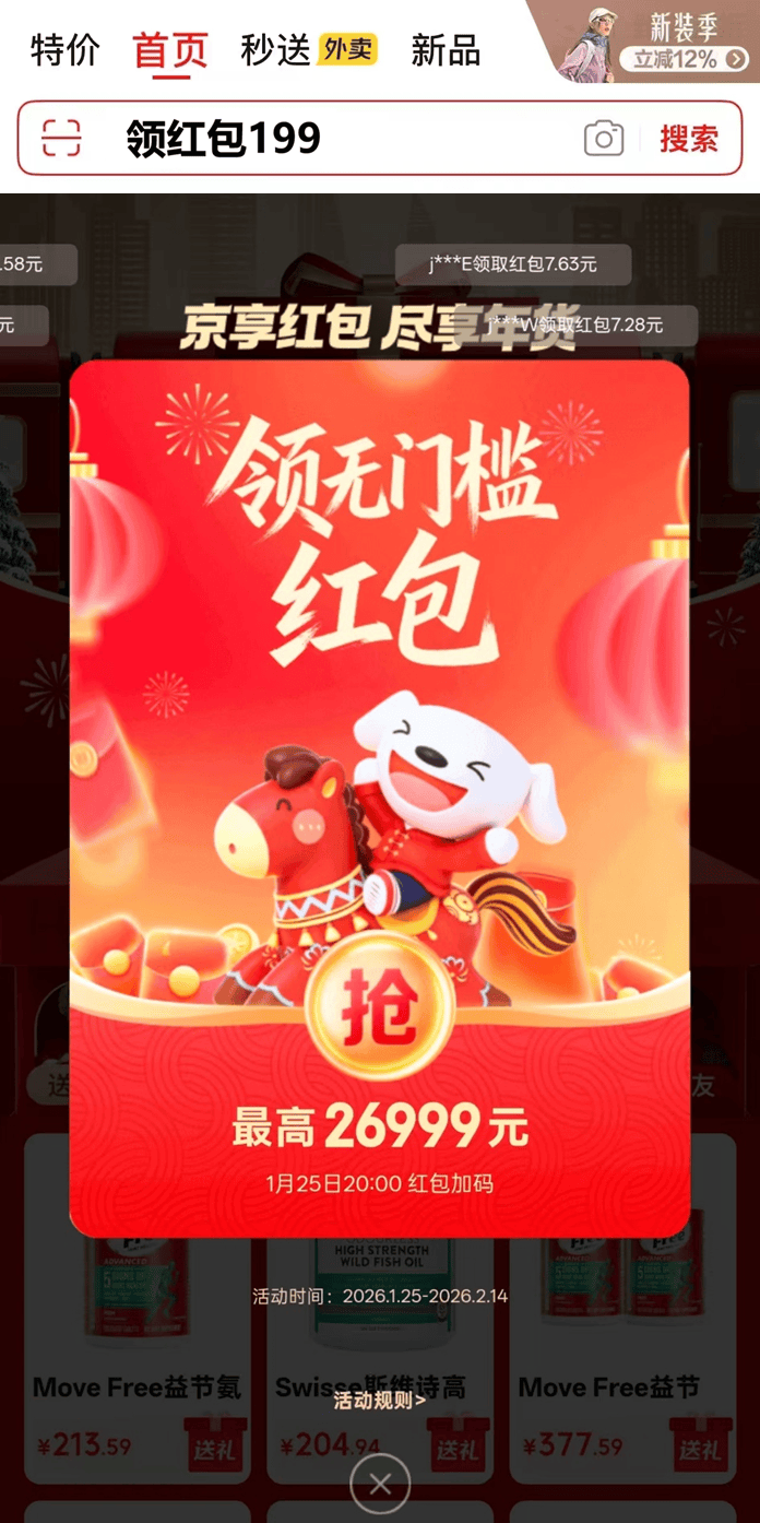 【东哥平台】打开东哥首页,直接搜索“领红包199”,就能领取年货节最高26999元大额红包,所有订单都能叠加使用,每天可以领一次!领完红包再搜索“补贴567”,领取全品类最高2000元优惠券;
