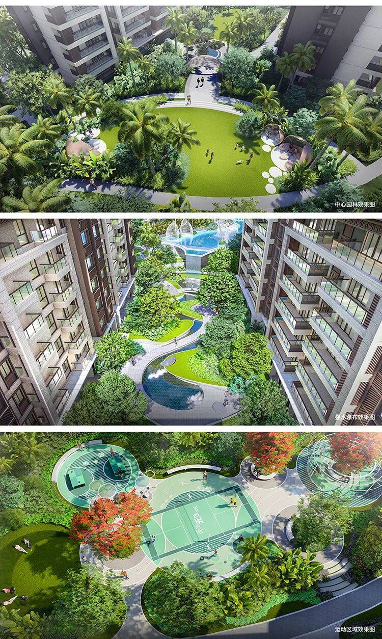 溪谷双园:二期园林设计理念根据自身地块山体条件进行升级设计,在保持地形植被的情况下规划山体公园,独有的20米落差山体“溪流”景观,并搭配自身园区景观形成“溪谷双园”独特景色。