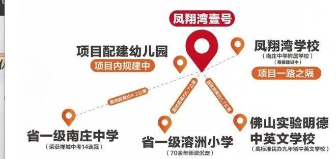 凤翔湾壹号业主子女可享受从幼儿园到中学的省一级优质教育资源。项目附近有溶州幼儿园、上元幼儿园,社区内规划有 12 班凤翔湾幼儿园(公办)。参考 2024 年学校分配,业主子女可分配到广东省一级学校溶洲小学(1951 年创办,70 余年师资沉淀,德育优秀学校),以及省一级南庄中学(初中部,1959 年创办,2008 - 2021 年连续 14 年禅城中考成绩第一,获多项荣誉,也是全国机器人进课堂实验基地)。此外,还有育贤学校、佛山实验明德中英文学校可供选择,项目一路之隔还规划有 42 班的公办九年一贯制凤翔湾学校(南庄中学附属学校,已通过环评)。售楼处电线 。