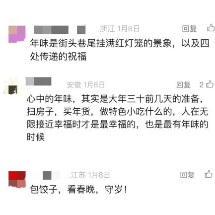 “年味+文旅”文旅模式的核心就是“年味”,那么何为“年味”?有网友说“年味是街头巷尾挂满红灯笼的景象”,也有人认为“年味是一家人在一起吃年夜饭、包饺子、看春晚”,还有人认为“年味是大年三十前几天的准备,扫房子,买年货,做特色小吃”,更有网友给出扎心回答“小时候,年味是糖果的甜,是新衣的香;长大后,年味是那张小小的车票,是即将或正在踏上的归途。”