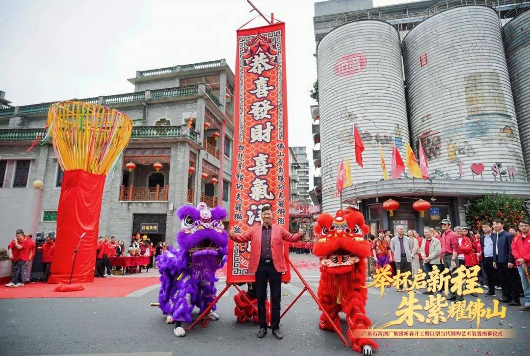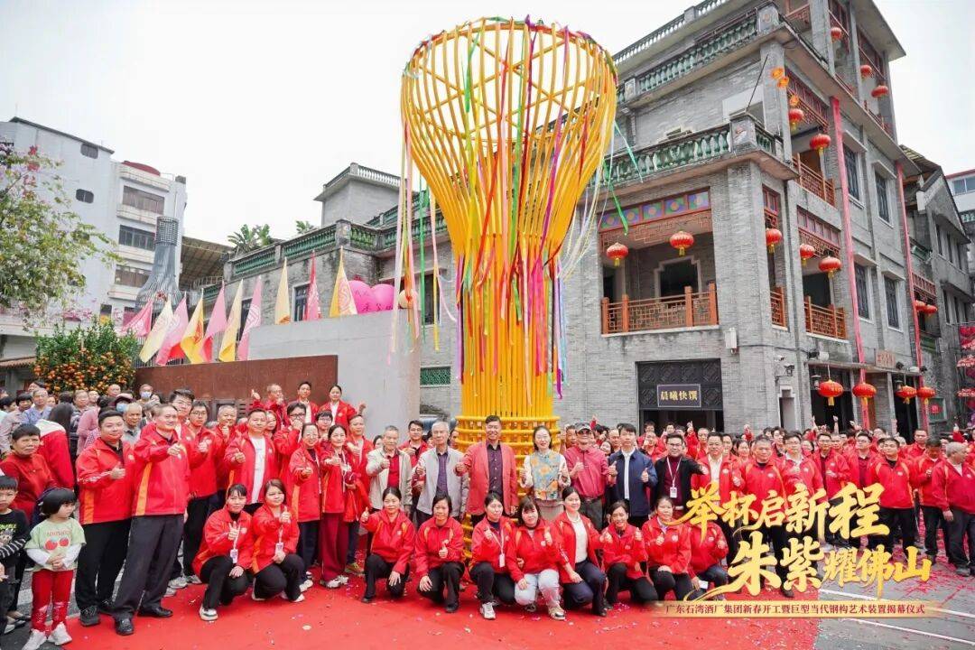 新春开工仪式后,石湾酒厂集团巨型当代钢构艺术装置同步震撼揭幕,为佛山城市文化版图再添新地标。